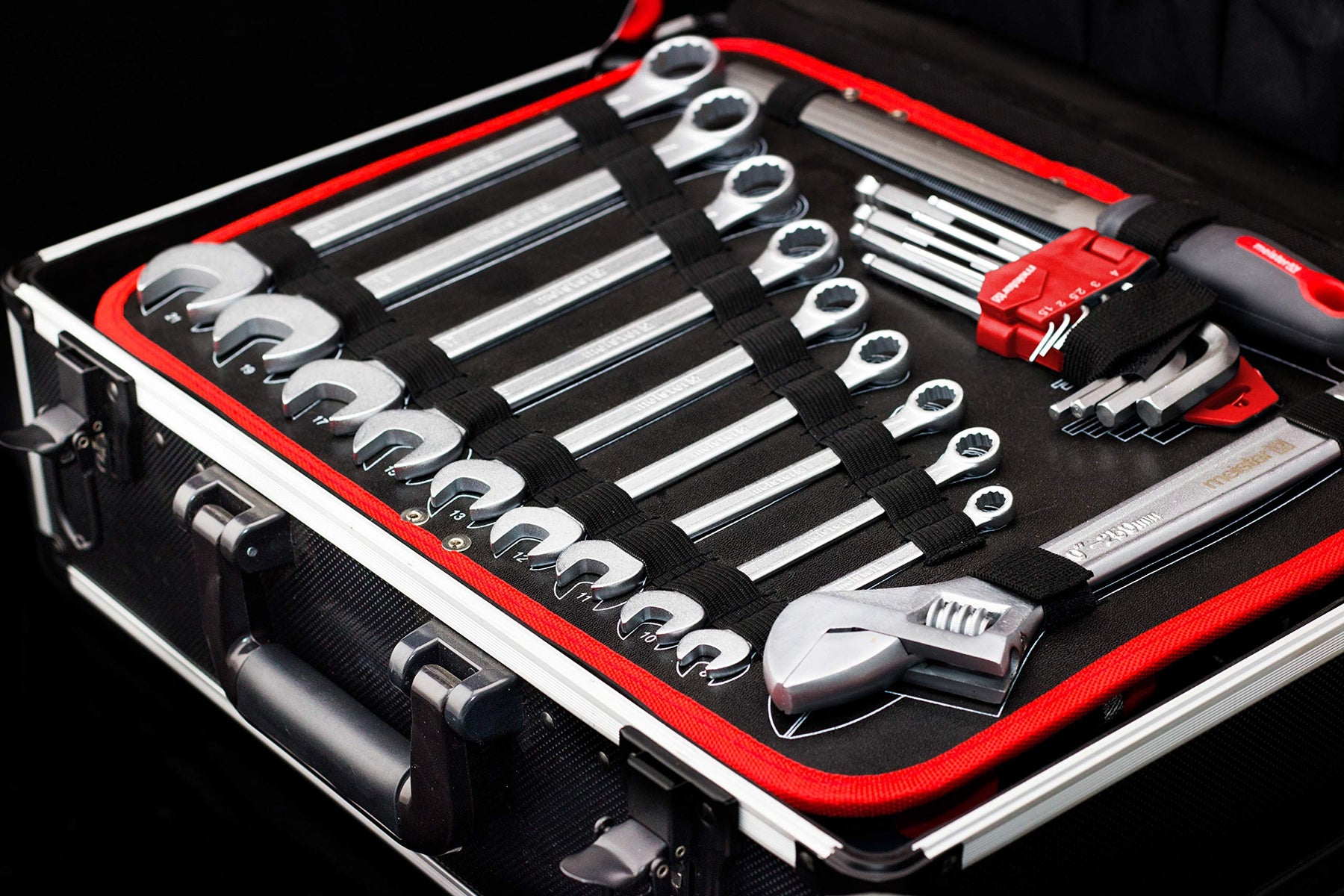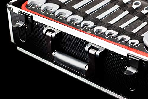 - PRAKTISCHER KOFFER: Koffer aus Aluminium mit abgerundeten Stoßkanten & Eckenschutz | Komfort-Tragegriff für einen einfachen Transport | Integrierte Zwischeneinlage für das kompakte Verstauen des Werkzeugs