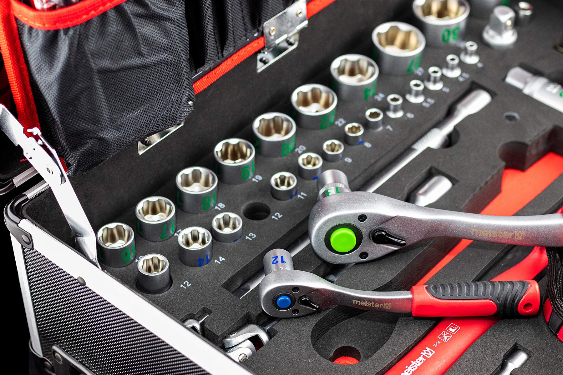 - TOLLE FEATURES: Abgebildetete Konturen vereinfachen das Einsortieren des Werkzeugs nach Gebrauch | Klett- & Gummibänder sorgen für einen sicheren Halt der Werkzeuge | Extra große Ziffern auf den Stecknüssen